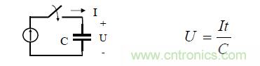 1. 當(dāng)一電流流經(jīng)電容, 電容兩端的電壓逐漸增加, 并且電容量越大電壓增加越慢。