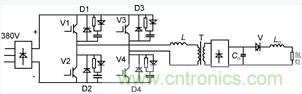 此處將限流電感L放在變壓器原邊。這除了能實現功率管的零電壓開通外,例如在V1,V4關斷后,由于L的續(xù)流作用,D2,D3導通,則V2,V3可實現零電壓開通;還可分擔變壓器原邊繞組上的壓降,減少變壓器匝數,進而減小變壓器磁心。