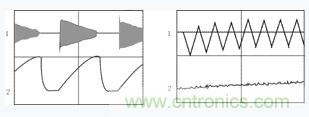 圖6為實測波形,(b)圖示出(a)圖的前幾個周期。圖中上部是變壓器原邊電源i1波形,下部是儲能電容U0的電壓波形,與圖3仿真波形對應。由圖中看出,i1為零后,U0并未立刻下降,而是保持一段時間,這是因為充放電時間固定的緣故,當U0達到預定值后保持至充電時間終了。