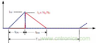 最大初級(jí)峰值電流IPP出現(xiàn)在啟動(dòng)開始的時(shí)候,隨即UCC28700器件會(huì)進(jìn)入恒流調(diào)節(jié)狀態(tài),保持0.425的恒定二次二極管導(dǎo)通占空比。