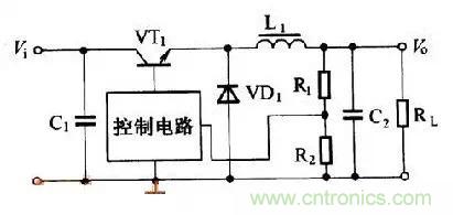 DC-DC就是直流-直流變換,一般有升壓(BOOST)、降壓(BUCK型)兩種。降壓式DC/DC變換器的輸出電流較大,多為數(shù)百毫安至幾安,因此適用于輸出電流較大的場合。降壓式DC/DC變換器基本工作原理電路如下圖所示。VT1為開關(guān)管,當(dāng)VT1導(dǎo)通時,輸入電壓Vi通過電感L1向負(fù)載RL供電,與此同時也向電容C2充電。在這個過程中,電容C2及電感L1中儲存能量。當(dāng)VT1截止時,由儲存在電感L1中的能量繼續(xù)向RL供電,當(dāng)輸出電壓要下降時,電容C2中的能量也向RL放電,維持輸出電壓不變。二極管VD1為續(xù)流二極管,以便構(gòu)成電路回路。輸出的電壓Vo經(jīng)R1和R2組成的分壓器分壓,把輸出電壓的信號反饋至控制電路,由控制電路來控制開關(guān)管的導(dǎo)通及截止時間,使輸出電壓保持不變。