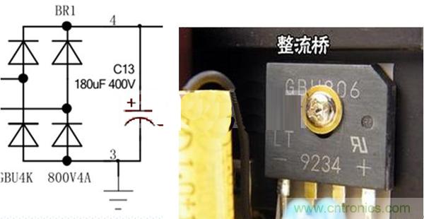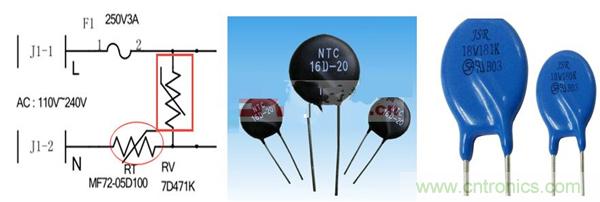圖4中的RT為NTC,電阻值隨溫度升高而降低,抑制開(kāi)機(jī)時(shí)產(chǎn)生的浪涌電壓形成的浪涌電流。