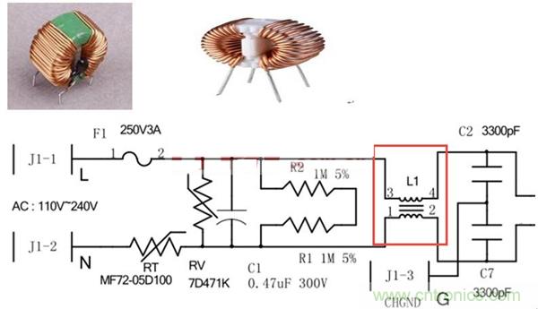 共模電感上,有兩個(gè)共模電感線圈。這兩個(gè)線圈繞在同一鐵芯上,匝數(shù)和相位都相同(繞制方向向反)。共模電感器要不易飽和,如此就需要選擇低B-H(磁芯損耗與飽和磁通密度)溫度特性的材料,因需要較高的電感量,磁芯的μi值也就要高,同時(shí)還必須有較低的磁芯損耗和較高的BS(飽和磁通密度)值,符合上述要求之磁芯材質(zhì),目前以鐵氧體材質(zhì)最為合適,磁芯大小在設(shè)計(jì)時(shí)并沒(méi)有一定的規(guī)定,原則上只要符合所需要的電感量,且在允許的低頻損耗范圍內(nèi),所設(shè)計(jì)的產(chǎn)品體積最小化。