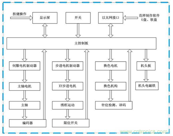 圖1:繡花機控制系統(tǒng)結(jié)構(gòu)框圖