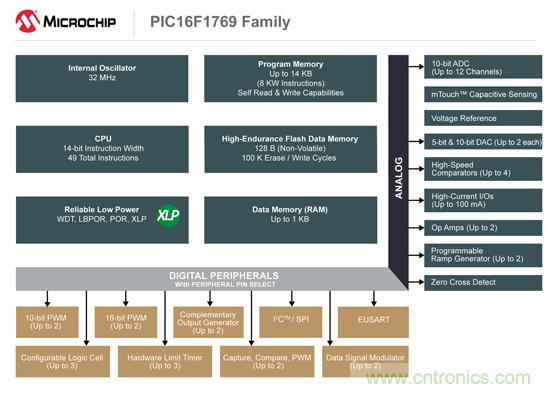 Microchip MCU8部門副總裁Steve Drehobl表示:“PIC16F1769系列真正強大的功能在于能夠實現(xiàn)片上外設的互連,從而根據(jù)特定的應用來創(chuàng)建定制化功能。再加上能夠同時控制獨立閉環(huán)通道,新產品的功能遠遠超出了傳統(tǒng)低成本8位 PIC MCU。”