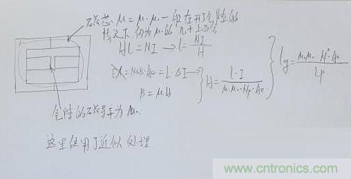 上面做了近似,近似所有的磁場能量都儲(chǔ)存在氣隙里面,因?yàn)榇判镜拇艑?dǎo)率很高,氣隙的磁場強(qiáng)度是磁芯的幾時(shí)到幾百倍,所以,近似磁芯為磁路短路,磁回路長度近似為氣隙長度。