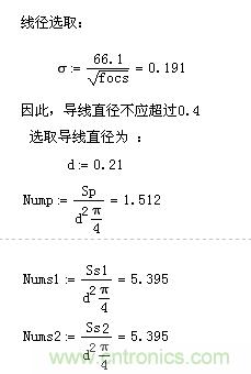對(duì)于一定的電流,需要的導(dǎo)線截面積是一定的,在實(shí)際選取線徑的時(shí)候,要結(jié)合實(shí)際所選的骨架幾何尺寸,做合適的組合,盡量不要散繞,對(duì)于某一層繞組,單根線太散的話,可以選取兩根或者幾根細(xì)線進(jìn)行并饒,只要繞組的總截面積在計(jì)算值左右就好。
