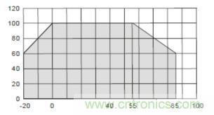 圖3:常規(guī)AC-DC產(chǎn)品的溫度降額曲線