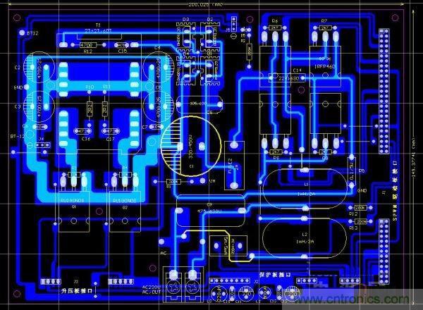 下面是功率主板的PCB截圖,長(zhǎng)寬為200X150MM,因?yàn)椋@部分的電路比較簡(jiǎn)單,就不給出原理圖了,直接畫(huà)了PCB圖,如圖1所示。