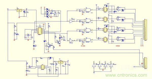 SPWM的核心部分采用了TDS2285單片機(jī)芯片。U3、U4組成時(shí)序和死區(qū)電路,末級(jí)輸出用了4個(gè)250光藕,H橋的二個(gè)上管用了自舉式供電方式,這樣做的目的是簡(jiǎn)化電路,可以不用隔離電源。