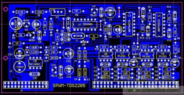 SPWM的驅(qū)動(dòng)核心采用了單片機(jī)SPWM芯片TDS2285,所以,SPWM驅(qū)動(dòng)部分相對(duì)純硬件來(lái)講,比較簡(jiǎn)單,制作完成后要調(diào)試的東西很少,所以,比較容易成功。