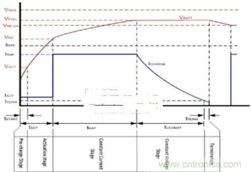 充電開始為預充階段,以檢查電池狀況是否良好。在此階段中,通常給電池提供電池容量5%到15%的少量電流,如果電池電壓上升到2.8V以上,則認為電池狀況良好,可以進入到激活階段。在此階段中,給電池提供相同的電流,但會持續(xù)更長的時間。當電池電壓上升到3V以上,則啟動快充,并提供等于或低于電池容量的恒定電流。