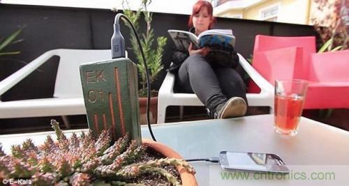 智利工程師最新研制的生物充電器——“E-Kaia”可以將植物變成一個(gè)個(gè)小小的“充電站”,只需將它插入植物土壤之中,花盆的USB輸電端便能對(duì)手機(jī)等設(shè)備充電。