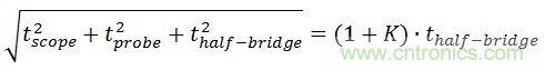 為確保儀器和探頭不會(huì)對(duì)測(cè)量造成重大影響,我們可以假設(shè),能夠用和方根法把探頭、示波器和半橋的上升時(shí)間加起來(lái)。盡管這種方法并不總是正確,但我們?cè)谧畛豕烙?jì)中可假設(shè)這一關(guān)系成立。