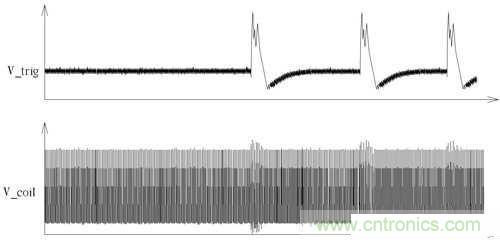 圖7 供電線圈訊號(hào)與取出觸發(fā)訊號(hào)波形
