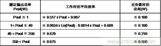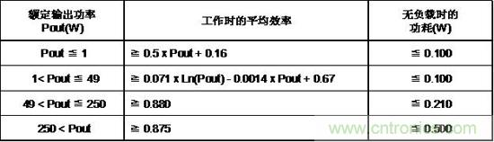 表1.DOE CEC 6級外部電源能效標(biāo)準(zhǔn)AC/DC電源(輸出電壓≧ 6V)