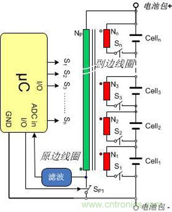 因為被動均衡的局限,主動均衡的概念得以提出并發(fā)展。主動均衡是把高能量電池中的能量轉(zhuǎn)移到低能量電池中,相當(dāng)于對木板“截長補短”。因為不像被動均衡只有“截”,在如何“補”的問題上業(yè)內(nèi)充分發(fā)揮了各自的優(yōu)勢和想象力,主動均衡的方案可謂異彩紛呈。除了飛度電容的方案(因為適用串?dāng)?shù)低,轉(zhuǎn)移有局限性而未能成為主流),還有變壓器的方案,變壓器方案中又有各種拓撲結(jié)構(gòu)。半導(dǎo)體廠家也設(shè)計了電池專用的DCDC轉(zhuǎn)換芯片,命名為主動均衡控制芯片來推向市場,顯然是不想錯過這班車。