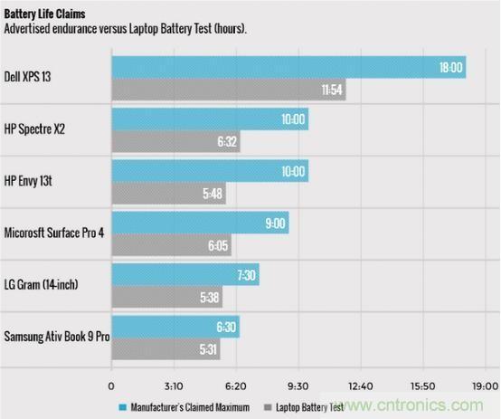 外媒Laptop Mag近日針對(duì)市場(chǎng)中主流筆記本進(jìn)行了一項(xiàng)電池壽命比對(duì)測(cè)試,通過(guò)筆記本電池測(cè)試得出接近于現(xiàn)實(shí)使用環(huán)境下的電池壽命,再與官方宣稱的電池壽命相比對(duì)。