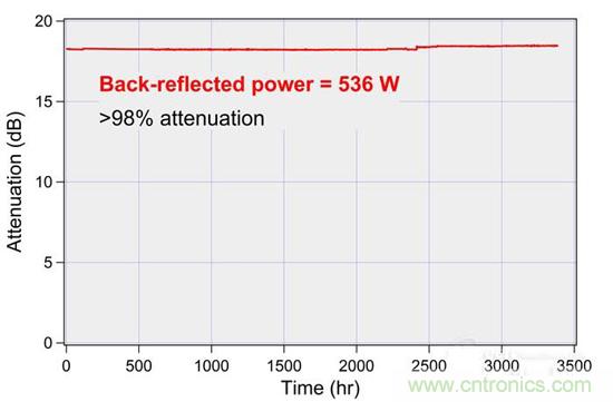 因?yàn)楣ぜ砻娴牟灰?guī)則、與表面法線對(duì)齊不精確以及處理光學(xué)元件采光角度的限制,典型的回返激光通常只占一小部分激光器的功率,此外,回返現(xiàn)象通常持續(xù)時(shí)間很短,例如打孔這樣的應(yīng)用。但是,部分光纖激光器的設(shè)計(jì)會(huì)導(dǎo)致難以處理甚至無法處理反射材料?;胤翟斐傻膿p傷通常是由于光功率在聚合物材料上能量堆積而導(dǎo)致過熱或燃燒引起的。nLIGHT altaTM光纖激光器會(huì)剝除耦合到饋送光纖的回返光,并將其引導(dǎo)到水冷光束吸收器,激光在此被轉(zhuǎn)換為熱量,不涉及任何聚合物,從而消除了主要的損壞原因。無聚合物的隔離器旨在連續(xù)吸收消除>500 W的回返激光,如壽命測試所示。