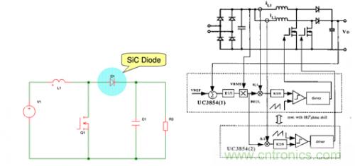 因?yàn)镾iC器件的特性,SiC二極管的反向恢復(fù)時(shí)間接近0,因此開關(guān)損耗很低。將SiC用于PFC中可以帶來(lái)的好處是:高頻化、在較高的開關(guān)頻率下依然可以得到較低的開關(guān)損耗,電感的體積可以減小,同時(shí)還提高了功率密度。