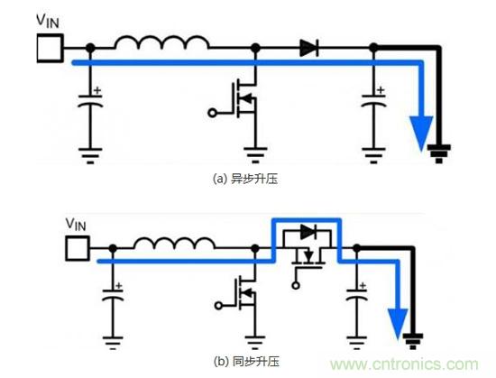 如果不考慮升壓轉(zhuǎn)換器的自然限制,系統(tǒng)可靠性會(huì)降低同時(shí)成本會(huì)增加,從而會(huì)導(dǎo)致系統(tǒng)其它部件的過(guò)度設(shè)計(jì)。升壓電路具有一個(gè)從輸入到輸出的自然導(dǎo)通路徑(圖1)。即使這個(gè)轉(zhuǎn)換器是關(guān)閉的,電流也可以通過(guò)升壓二極管或同步功率FET的體二極管流至輸出。