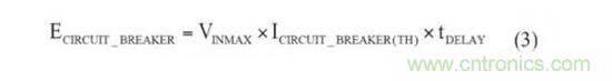 所選保護(hù)控制器也許具有一個(gè)故障安全斷路器的電流閥,從而觸發(fā)瞬時(shí)輸入斷開。斷路器的能量計(jì)算與短路情況下相類似,不過(guò),保護(hù)控制器會(huì)設(shè)定一個(gè)不同的電流閥值。MOSFET上有可能出現(xiàn)的最差情況能量由控制器的響應(yīng)或延遲時(shí)間計(jì)算得出。