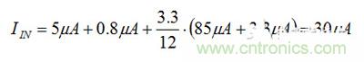 我計算出的30μA電流值有點不同,不過對于粗略估算來說,這個值已經(jīng)十分接近了。