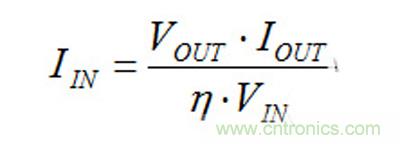 你還可以使用效率曲線來計算DC/DC轉(zhuǎn)換器的輸入電流,不過這個電流值不是無負載情況下的電流值。理論上,無負載時的效率為零,所以,你必須使用我在本文中介紹的方法估算出無負載電源電流。在任何其它的負載條件下,你可以使用數(shù)據(jù)表中的效率曲線,連同方程式3來完成計算:
