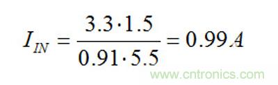以SIMPLE SWITCHERLM22670 3A降壓穩(wěn)壓器的數(shù)據(jù)表為例,負載為1.5A,輸入電壓和輸出電壓分別為5.5V和3.3V情況下的效率大約為91%。這使你的輸入電流大約為:
