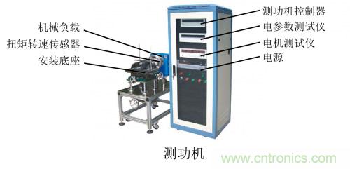傳感器和制動(dòng)器做成一體的款式。測試臺(tái)架包括安裝底座、扭矩轉(zhuǎn)速傳感器、機(jī)械負(fù)載(制動(dòng)器),用于電機(jī)試驗(yàn)時(shí)的力矩加載,模擬電機(jī)的不同工況;機(jī)柜包括電參數(shù)測試儀、電機(jī)測試儀、測功機(jī)控制器、電源等,用于對系統(tǒng)的驅(qū)動(dòng)和對電機(jī)的測試。