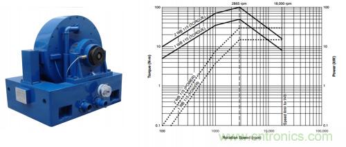 磁粉制動(dòng)器:可以輸出很大的扭矩,但一般只能運(yùn)行在低轉(zhuǎn)速(1000rpm)以下,只適用于大扭矩、低轉(zhuǎn)速的電機(jī)測試場合。可偏偏電動(dòng)汽車電機(jī),特別是乘用車電機(jī),動(dòng)輒上萬rpm的轉(zhuǎn)速,讓磁粉制動(dòng)器直接出局。