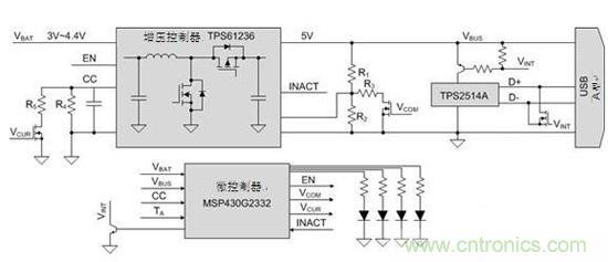 可能會(huì)發(fā)現(xiàn)的其它子系統(tǒng):顯示電池電量狀態(tài)的發(fā)光二極管(LED)、在D +/ D-線路上與便攜式設(shè)備通信的裝置,或進(jìn)行過熱、過流檢測(cè)的故障保護(hù)機(jī)制。整個(gè)系統(tǒng)很快變得復(fù)雜起來,許多不同的集成電路(IC)必須共同協(xié)作。