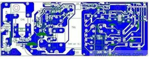 A)功率大電流地線與控制回路地線共用同一走線,由于PCB覆銅線并非理想導(dǎo)體,它總是可以等效成電感或電阻,當(dāng)功率電流流過了和信號(hào)控制回路共用的PCB線,在PCB上產(chǎn)生電壓降落,特別是采用多點(diǎn)接地時(shí),由于控制電路各節(jié)點(diǎn)分散在不同位置,功率電流引起的電壓降對(duì)控制電路疊加了擾動(dòng),使電路發(fā)出噪音,這問題通常采用單點(diǎn)接地可以得到改善。