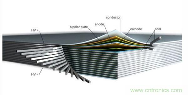 如今,電池儼然成為了決定電動車未來的核心部件,這也不難理解那么多的電池制造商在電池技術(shù)上絞盡腦汁、期望有所重大突破,并且制定各種野心勃勃發(fā)展目標(biāo),例如:將電池系統(tǒng)的能量密度從250Wh/L左右提升到500Wh/L、同時(shí)大幅度降低生產(chǎn)成本。一方面,電池材料需要進(jìn)一步優(yōu)化,提高電池能量密度,另一方面,電池空間體利用需要提高、減小有限空間內(nèi)的非活性材料。現(xiàn)有的電池封裝package方式造成了大量的體積被非電池活性材料占據(jù),無法充分利用有限的電池空間。為了實(shí)現(xiàn)這個(gè)目標(biāo), IAV公司與 Thyssenkrupp AG和Fraunhofer Institute for Ceramic Technologies and Systems(IKTS)一起合作開發(fā)汽車底盤電池集成項(xiàng)目( EMBATT:chassis-embedded energy),直接將電池嵌入到汽車底盤,大幅度減少電池本身的結(jié)構(gòu)件所占據(jù)的體積,達(dá)到提高能量密度Wh/L的目標(biāo)。EMBATT概念的中心思想是采用雙極性bipolar鋰離子電池。在這個(gè)合作開發(fā)項(xiàng)目中,IAV主要負(fù)責(zé)車輛開發(fā),包括車輛概念、測量安全、電池布局和設(shè)計(jì)、控制軟件標(biāo)定。IKTS主要負(fù)責(zé)定制化電池材料和電極的制造加工技術(shù)。Thyssenkrupp AG主要負(fù)責(zé)后期的電池生產(chǎn)。