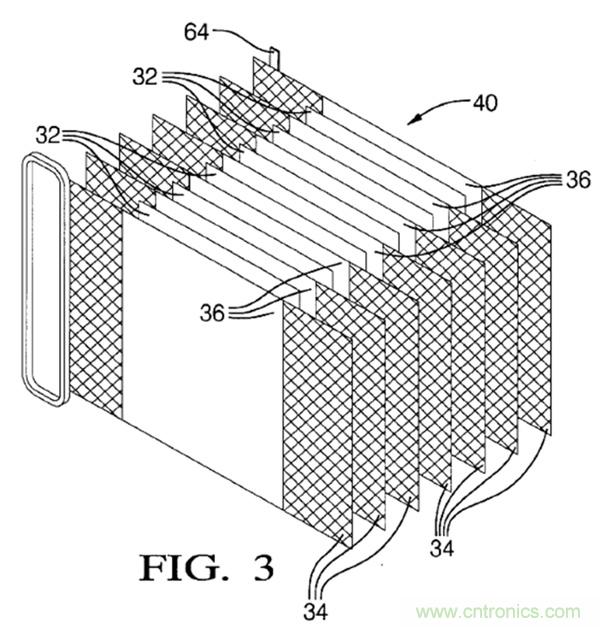 下圖Fig3是雙極性電極的堆疊stack,可以稱之為電堆40。其中,32是隔膜;34是集流體;36是雙極性電極,兩側(cè)分別是正負(fù)極活性物質(zhì)?;窘Y(jié)構(gòu)與上面的示例是一樣的。