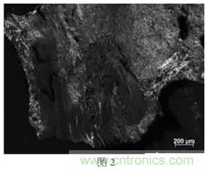 圖2對應原料b的偏光照片,結果顯示原料b以鑲嵌型光學結構為主,取向性較好;