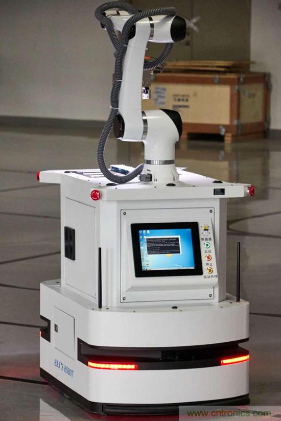 Star機器人是大族機器人產(chǎn)品線的一款明星產(chǎn)品,該機器人融合了大族自有的移動機器人、機械臂、視覺系統(tǒng)、力控夾具等核心部件,可以實現(xiàn)手臂末端±0.2mm的重復抓取精度。機器人運行過程中通過磁帶與激光SLAM混合導航,運行靈活,機器人可以實現(xiàn)前進、后退、原地轉(zhuǎn)向等動作。機械臂臂展可以達到950mm。