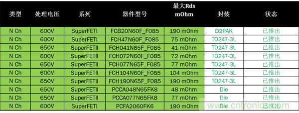 表3:安森美半導(dǎo)體的SJ MOSFET和裸片陣容