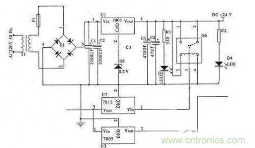 在無(wú)線充電發(fā)射電路中電源穩(wěn)壓電路采用的是7805和7812配合D2