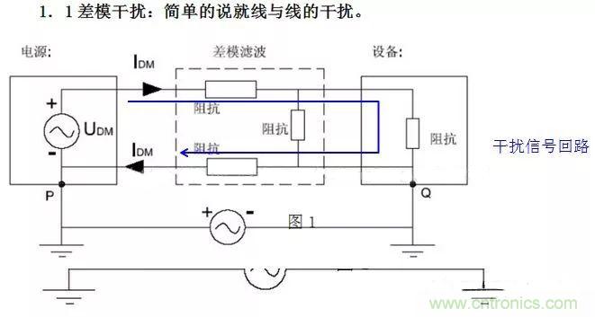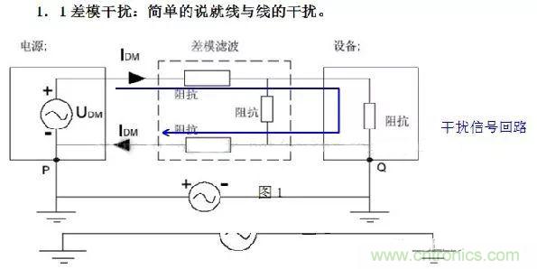 2.差模干擾(Differential-mode Interference):兩導(dǎo)線上的干擾電流,振幅相等,方向相反稱(chēng)為差模干擾。(任何兩個(gè)載流體之間不希望有的電位差)