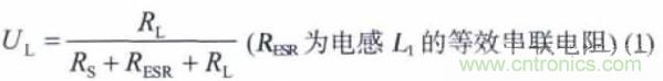 式(1)表明加入電感L 將使UL 變小,影響電源的負(fù)載調(diào)整率。若要使輸出電壓穩(wěn)定,應(yīng)選用等效串聯(lián)電阻小的電感器件,電感器的等效串聯(lián)電阻由其繞制導(dǎo)線的直流電阻決定。
