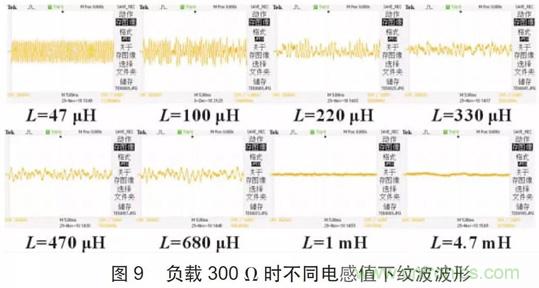 2.2.3 不同電感值下紋波隨負(fù)載的變化