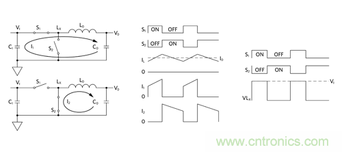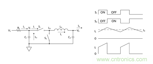 圖 5:Buck 調節(jié)器原理簡圖及其工作波形傳導 EMI。