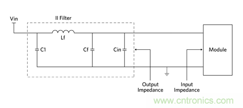 為降低來自電源轉換器的傳導發(fā)射,在輸入源和電源轉換器之間使用 π 濾波器。選擇濾波器元件的設計步驟如下: