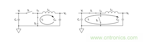 最大程度減小高 di/dt 電流環(huán)路:將 LO、CO 和 S2 正確布置在一起,最大程度減小 I2 電流環(huán)路。然后,使這一組元件靠近 S1 和 C1,最大程度減小 I1 電流環(huán)路。使用 buck 調節(jié)器 IC(即集成功率開關 S1 和 S2 的 buck 控制器)時,選擇具有好的引腳排列從而支持這種最小化的 IC 非常重要。相同道理也適用于使用電源模塊的情況。