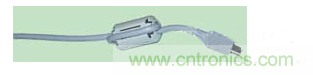 將一個鐵氧體磁環(huán)套在導(dǎo)線或電纜上就構(gòu)成了一介簡單、經(jīng)濟(jì)、便于安裝的濾波器,如圖4所示。鐵氧體的作用是將導(dǎo)線周圍的磁場集中起來,從而使導(dǎo)線的電感增加數(shù)百倍。鐵氧體扼流圈的最大好處是它既不需要重新設(shè)計電路,也不需要重新設(shè)計結(jié)構(gòu),因此在設(shè)備的改進(jìn)中廣泛應(yīng)用。生產(chǎn)廠家提供需多種不同內(nèi)徑規(guī)格的分體式鐵氧體,一般內(nèi)徑從5mm~13mm不等。當(dāng)信號線和回流線同時穿過鐵氧體時,鐵氧體對信號(差