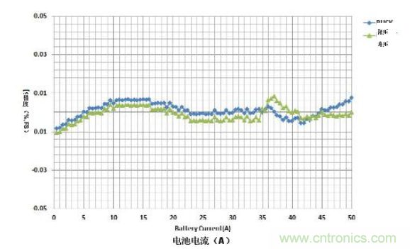 許多因素都會(huì)影響系統(tǒng)精度,包括溫度漂移、電壓漂移和偏移電壓。電池測試儀參考設(shè)計(jì)使用三點(diǎn)校準(zhǔn)來計(jì)算不同的影響來源或任何錯(cuò)誤。圖2顯示了在寬電流范圍內(nèi)實(shí)現(xiàn)的滿量程精度。該系統(tǒng)在電池充電時(shí)以降壓模式運(yùn)行,放電時(shí)以升壓模式運(yùn)行。