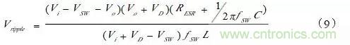 其中:iV為輸入電壓,SWV為開關(guān)管電壓,oV為輸出電壓,SWf為開關(guān)頻率,D為占空比。