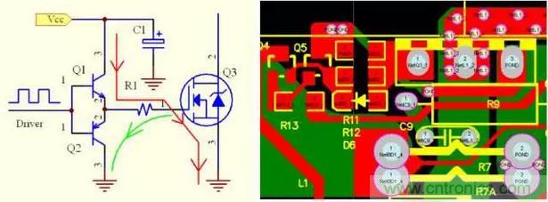 驅動源的地線要盡量靠近被驅動器件,以便 構成最小環(huán)路,減少振蕩與EMI問題