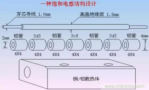 在其他條件相同情況下,相同體積的磁芯的飽和電感緩沖效果大致相當。既然如此,磁芯可以按照最有利于散熱的磁路進行設計。比如細長的管狀磁芯比環(huán)狀磁芯、多個小磁芯比集中一個大磁芯、穿心電感比多匝電感顯然具有更大的散熱表面積。